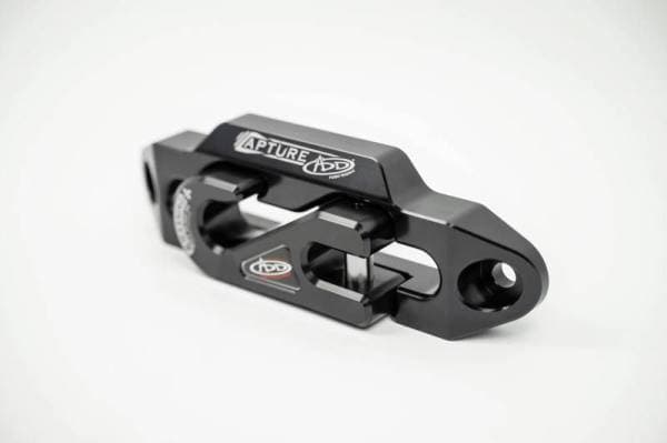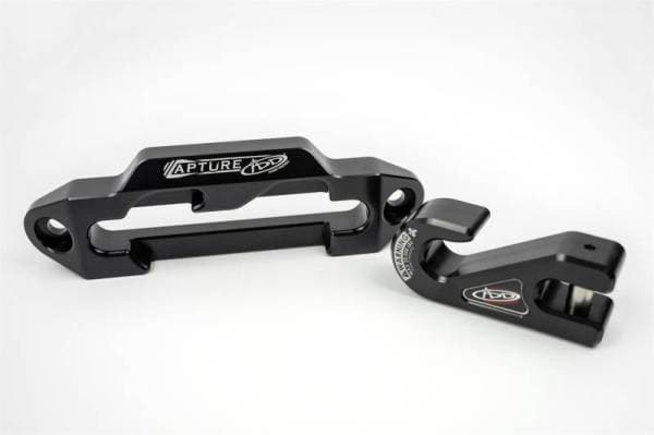The Capture fairlead system holds your hook in place when not in use, giving you the ultimate form and function. Our hook capture system keeps your hook from dangling outside your vehicle making a clean and low profile front end. Built from 1 5/16" thick CNC machined high quality aerospace aluminum the Capture fairlead is rated for up to 20,000 lbs to help with all your winching needs. Available in raw aluminum or a military grade hard anodized black finish to withstand everyday use. Fits nearly any aftermarket winch front bumper. For synthetic winch rope only.