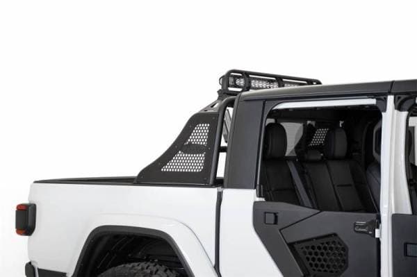 Provide a unique look to your Jeep Gladiator with the Race Series chase rack. Mounting options for a 40" light bar provides additional lighting for those off-road night adventures. Featuring our light actuator kit to raise and lower a front facing light bar so you can tuck it away when not in use. A sleek design on the Race Series chase rack makes your Gladiator stand out from the crowd. Laser cut aluminum panels reduce weight and allow for a precise fit. The Race Series chase rack is 100% bolt on.