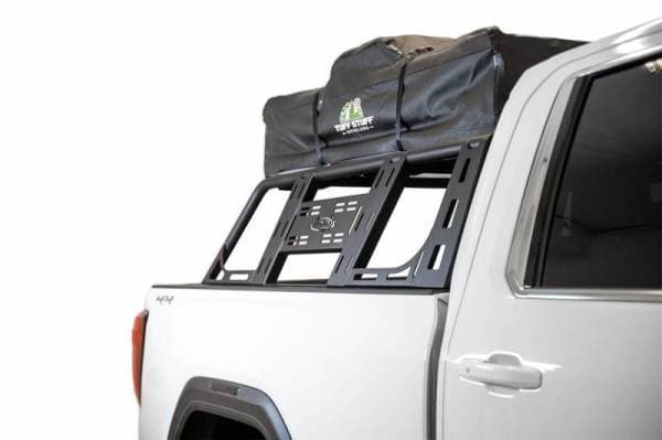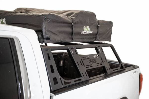 The Addictive Desert Designs ADD-Lander overland rack is now available for all full-size pickup trucks (with some exceptions). The universal design uses a clamp mounting system, so there is no drilling into your bed rails required for installation. This will fit Ram, Chevy, GMC and Ford 1500/2500/3500 series trucks. The combination of plate steel and tube gives a unique look while providing a sturdy mounting point for heavier items up top, such as rooftop tents. Slotted rails along the side of the universal overland rack give a mounting point almost any off-road accessory. As always, this product is powder coated hammer black and made in America.