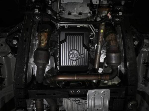 aFe POWER's Pro Series transmission pan brings performance engineering to the protection of your truck's transmission. The Pro Series transmission pan is constructed out of durable die-cast aluminum with reinforced ribs inside and out for maximum strength and heat transfer. This cover fits the Ford 10R60 and 10R80 transmissions. This Transmission pan has an increased fluid capacity of approximately 2.3 quarts over stock for better performance over a longer duration. Built-in internal and external fins transfer heat from the oil to the outside air for maximum cooling. Transmission pan comes with necessary hardware for installation. This pan incorporates a magnetic drain plug to capture loose particles for maximum protection.