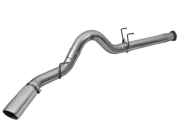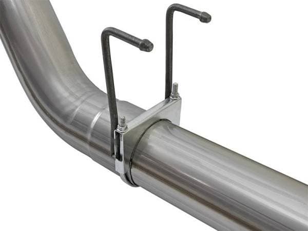 aFe LARGE BORE HD exhaust systems are constructed from mandrel-bent stainless steel tubing for maximum flow. Smooth transition bends allow for low turbulence, increasing horsepower and torque, while decreasing EGT. The 2-piece design and bayonet style hangers provide stability and for an easy installation. Finishing off the exhaust is a black, stainless steel slash cut tip with intercooling vents designed to reduce exhaust gas temperatures at the tailpipe. A unique stainless steel laser-cut aFe Power logo plate is riveted on for an aggressive style.