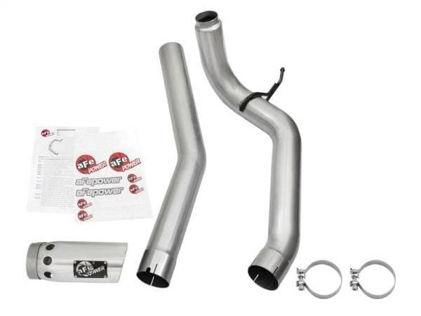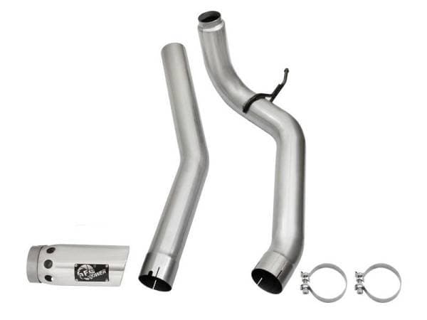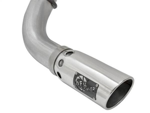aFe LARGE BORE HD exhaust systems are constructed from mandrel-bent stainless steel tubing for maximum flow. Smooth transition bends allow for low turbulence, increasing horsepower and torque, while decreasing EGT. The 2-piece design and bayonet style hangers provide stability and for an easy installation. Finishing off the exhaust is a polished, stainless steel slash cut tip with intercooling vents designed to reduce exhaust gas temperatures at the tailpipe. A unique stainless steel laser-cut aFe Power logo plate is riveted on for an aggressive style.