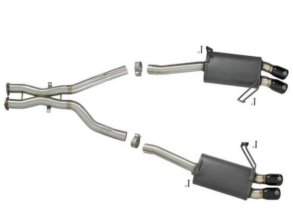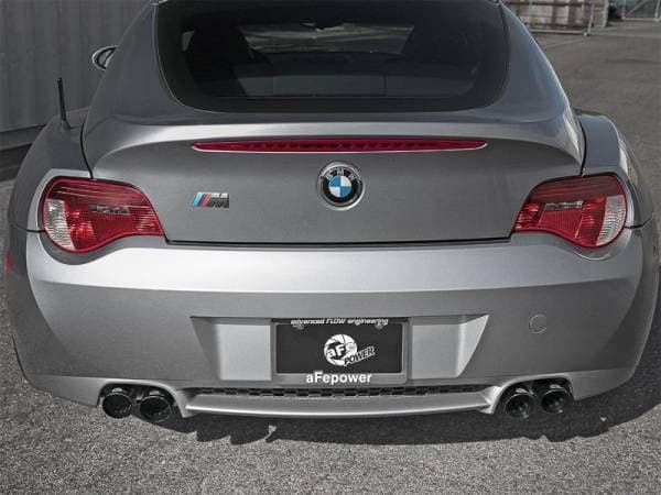 Unleash power and sound while improving the looks on your Z4 M Coupe with this MACH Force-Xp 2-1/2" 304 stainless steel cat back system. The larger diameter, mandrel bent tubing along with high-flow, stainless steel mufflers are less restricting for maximum flow, optimum sound and long lasting good looks. 100% hand TIG-welded for proven quality and durability, this MACH Force-Xp system is finished off with quad 3" polished, stainless steel exhaust tips with laser-etched aFe POWER logos to give your E86 a track-prepped, custom look. Performance Gains: In testing, the cat-back exhaust system resulted in gains up to +7 horsepower and +15 lbs. x ft. of torque, as measured on our in-house dyno. Quad 3" Diameter Stainless Steel Tips: Quad, rear exit, 3" diameter, angle cut stainless steel exhaust tips with an aFe POWER logo laser-etched on the top for a custom look. High-Flow Performance Muffler: Incorporating less-restricting dual, high-flow, 304 stainless steel mufflers into the exhaust system to eliminate exhaust drone, maintaining a smooth, unique sound. 2-1/2" 304 Stainless Steel Tubing: Less restrictive than stock exhaust allows maximum flow and low turbulence increasing torque, horsepower and improved throttle response. Perfect Fit: OE-style bayonet hangers are used to maintain a stable pipe location during high vibration and high heat conditions. The Bayonet tip holds the hanger bushing in place for an OE style fit that does not change with time. Hassle-Free Installation: This exhaust system is designed to be a true bolt on system with no cutting or modifications required. Quality hardware and clamps are included for a hassle-free installation.
