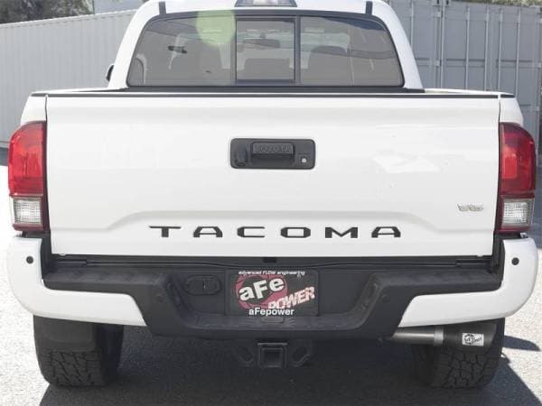 Release the untapped horsepower, torque and sound from your 2016-2018 Toyota Tacoma L4-2.7L / V6-3.5L with aFe's Mach Force Xp exhaust system. Constructed from 2-1/2" to 3" mandrel bent 409 stainless steel for improved flow and long-lasting performance, the system is 100% hand MIG-welded by certified craftsmen for race proven strength and durability. The Mach Force Xp system features a high-flow, straight through designed, 409 stainless steel muffler for improved performance gains while delivering an aggressive tone. The Mach Force Xp is finished off with a 4-1/2" diameter, stainless-steel exhaust tip for a custom look and includes quality hardware and clamps for a hassle-free install. Flow and Performance: This Mach Force-Xp Series exhaust system is constructed of 2-1/2" and 3" mandrel bent 409 stainless steel for maximum flow and low turbulence increasing torque, horsepower and improved throttle response. Aggressive Sound: A high-flow, straight through designed 409 stainless steel 18" length muffler improves performance gains across the power band while producing an aggressive tone. 4-1/2" Exhaust Tip: Finishing off this system is a 4-1/2" black, angle-cut, stainless steel exhaust tip w/ laser-cut aFe POWER badge for quality brand recognition and a custom-styled look. Perfect Fit: OE-style bayonet hangers are used to maintain a stable pipe location during any driving conditions. The bayonet tip holds the hanger bushing in place for an OE style, long lasting fit. Installation is a Snap: This Mach Force-Xp exhaust system uses all factory mounting locations providing stability and a hassle-free installation.