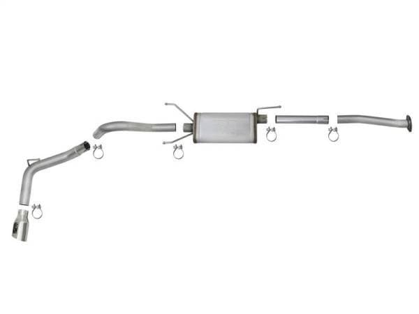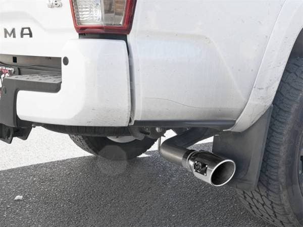 Release the untapped horsepower, torque and sound from your 2016-2018 Toyota Tacoma L4-2.7L / V6-3.5L with aFe's Mach Force Xp exhaust system. Constructed from 2-1/2" to 3" mandrel bent 409 stainless steel for improved flow and long-lasting performance, the system is 100% hand MIG-welded by certified craftsmen for race proven strength and durability. The Mach Force Xp system features a high-flow, straight through designed, 409 stainless steel muffler for improved performance gains while delivering an aggressive tone. The Mach Force Xp is finished off with a 4-1/2" diameter, stainless-steel exhaust tip for a custom look and includes quality hardware and clamps for a hassle-free install. Flow and Performance: This Mach Force-Xp Series exhaust system is constructed of 2-1/2" and 3" mandrel bent 409 stainless steel for maximum flow and low turbulence increasing torque, horsepower and improved throttle response. Aggressive Sound: A high-flow, straight through designed 409 stainless steel 18" length muffler improves performance gains across the power band while producing an aggressive tone. 4-1/2" Exhaust Tip: Finishing off this system is a 4-1/2" black, angle-cut, stainless steel exhaust tip w/ laser-cut aFe POWER badge for quality brand recognition and a custom-styled look. Perfect Fit: OE-style bayonet hangers are used to maintain a stable pi pe location during any driving conditions. The bayonet tip holds the hanger bushing in place for an OE style, long lasting fit. Installation is a Snap: This Mach Force-Xp exhaust system uses all factory mounting locations providing stability and a hassle-free installation.
