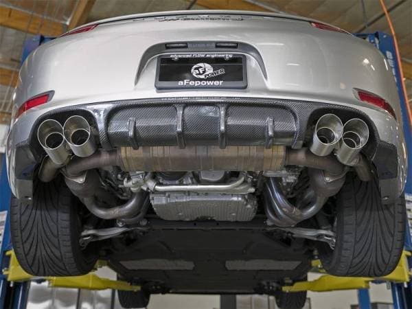 Give your Porsche (991) the luxurious style it deserves with the aFe POWER Mach Force-XP tip upgrades for the 2012 - 2016 Porsche 911 C2S with the H6-3.8L engine. Realizing that the OE exhaust tip could be improved, aFe designed a special quad 3-1/2" 304 stainless steel exhaust tip assembly. Constructed of 3-1/2" brush finished, 304 stainless steel tubing for improved performance and overall breath-taking appearance. High quality clamps and hardware are used, these tips are also manufactured to the OE style, resulting in a perfectly precise fit and a complete bolt-on installation. The tips are 100% hand TIG-welded by certified craftsmen fo r race proven strength and durability that your Porsche demands! No modifications are necessary and all hardware is included within the kit. 3-1/2" dia. Brush Finish Stainless Steel Exhaust Tip: These tips are 3-1/2" dia. brush finished stainless steel exhaust tips that gives your Porsche a clean, breath-taking appearance. Stainless Steel and Construction: This unique tip uses 3-1/2" angle-cut brush finished, 304 stainless steel tubing that is TIG-welded by a certified craftsmen. Hassle-Free Installation: These tips are also manufactured to the OE style, resulting in a perfectly precise, hassle-fee installation fit with no modifications required.