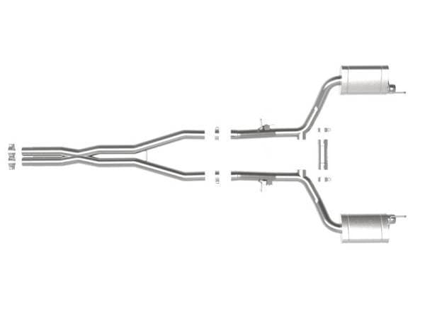 aFe POWER MACH Force-Xp cat-back exhaust system is constructed of 3 IN mandrel-bent 304 stainless steel tubing for maximum strength and durability. This system features high-flow 304 stainless steel mufflers and produces an aggressive sound. A mitered merge X-pipe is used to balance and evenly distribute exhaust pulses traveling, minimizing exhaust drone and maximizing scavenging. The crossover tube balances distribution of exhaust pulses resulting reduced drone, and improving sound. This system includes factory style exhaust valves which require the remounding of the factory exhaust valve motors. These valves help regulate, direct and control the flow and back-pressure for maximum performance. Utilizing factory style hangers this system is a direct bolt-on system, which requires no cutting or modifications for a hassle-free installation., and is 100% MIG-Welded for race proven strength and durability.