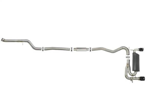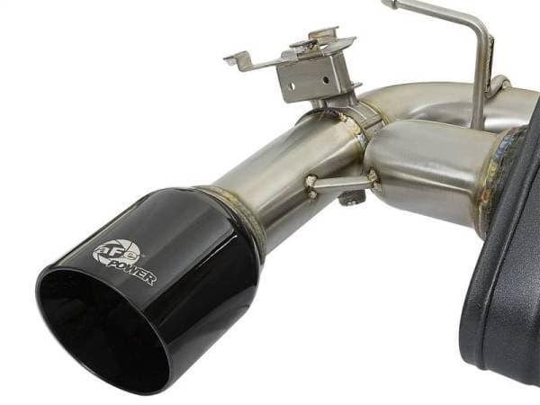 The aFe MACH Force-Xp cat-back exhaust system exceeds your quality and performance expectations. Mandrel bent 304 stainless steel tubing and high flow transverse muffler offers maximum exhaust flow and incorporates a factory style exhaust valve to control the exhaust note. The valve utilizes the factory valve motor and factory performance modes. When closed, it directs the exhaust through the high flow muffler for a smooth, tuned exhaust note. When opened, the exhaust is allowed to bypass the muffler and unleash sound and performance. Large diameter stainless steel exhaust tips come with a laser-etched aFe POWER logo for a stylish finish.