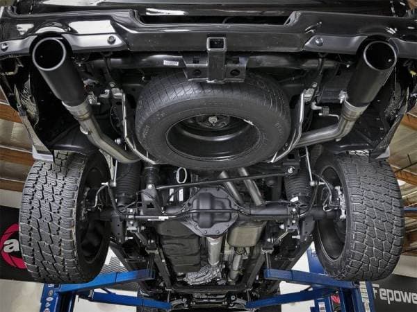 Now your 2019 Dodge Ram 5.7 HEMI can perform and sound as good as it looks with this MACH Force Xp cat-back exhaust system. In-house dyno testing produced gains of up to +22 horsepower and +26 lbs. x ft. torque for towing, track and street performance. 3" mandrel bent, 409 stainless steel tubing and high-flow, muffler improve performance across the power band and delivers a deep, aggressive exhaust tone. 100% MIG-welded for strength and durability and long lasting, good looks, this system is finished with dual, 5" polished stainless steel tips with aFe Power logo badging for a unique, custom appearance.
