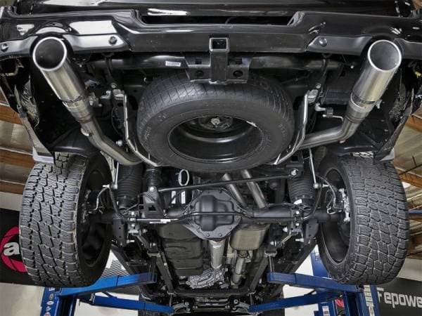 Now your 2019 Dodge Ram 5.7 HEMI can perform and sound as good as it looks with this MACH Force Xp cat-back exhaust system. In-house dyno testing produced gains of up to +22 horsepower and +26 lbs. x ft. torque for towing, track and street performance. 3" mandrel bent, 409 stainless steel tubing and high-flow, muffler improve performance across the power band and delivers a deep, aggressive exhaust tone. 100% MIG-welded for strength and durability and long lasting, good looks, this system is finished with dual, 5" polished stainless steel tips with aFe Power logo badging for a unique, custom appearance.
