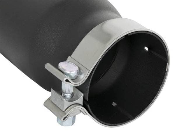 aFe Power is proud to introduce the all new diesel exhaust tip. This tip comes with a black finish and is designed to fit 3-1/2" exhaust systems. With a 3-1/2" inlet x 4-1/2" outlet and 12" inch length, this single-walled, angle cut rolled tip comes with a unique laser-cut aFe Power logo plate riveted on for an aggressive style. Leak-Free Seal: A high quality stainless steel band clamp is used for a complete 360 degree sealing surface. aFe Badging: The exhaust tip comes with a unique laser-cut aFe Power logo plate riveted on for an aggressive style.