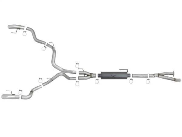 aFe is proud to introduce the MACH Force-Xp "Hi-Tuck" Cat-Back exhaust system for the 2017 Ford F-150 Raptor with the V6-3.5L EcoBoost twin-turbo engine. This exhaust system outflows the factory exhaust. This cat-back exhaust is constructed of 3" into 3-1/2" mandrel-bent 304 stainless steel tubing and comes complete with free-flowing high temp metallic black powder-coated muffler, OE-style bayonet hangers, band clamps and necessary hardware for a hassle-free installation. The smooth curves and increased diameter of this exhaust system helps remove restriction and keeps exhaust gas flowing smoothly for increased horsepower and torque. The system is finished off with a dual 304 stainless steel, single wall slash cut tips for an aggressive style. Hi-Tuck: This exhaust system is finished off with Hi-Tuck tips that are developed to give you extra clearance during extreme angle climbs or descents. Gives the truck an "Old School" traditional look. Installation is a Snap: This MACH Force-Xp exhaust system use all factory mounting locations providing stability and a hassle-free installation. Leak-Free Seal: High quality band clamps are used for a complete 360-degree sealing surface eliminating leak paths. Aggressive Sound: A free-flowing stainless steel high temp 24" length muffler is used to absorb high pitch tones producing a powerful sound and unleashing all available horsepower and torque. Dual 4" Tips: Finishing off this system are dual 4" diameter, 304 stainless steel tips. This is a dual rear exit system. Y-Merge Assemblies: The Y-merge assemblies evenly distributes exhaust pulses and minimizes exhaust drone to enhance the tone. Perfect Fit: OE-style bayonet hangers are used to maintain a stable pipe location during high vibration and high heat conditions. The Bayonet tip holds the hanger bushing in place for an OE style fit that does not change with time.