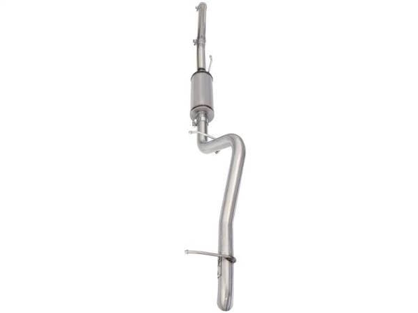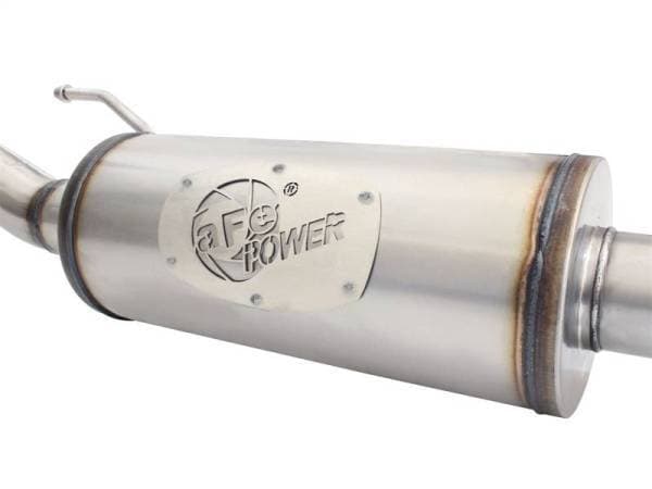 aFe power introduces the Hi-Tuck "Rock Basher" (RB) Cat-Back Exhaust System for 2007-2017 Jeep Wrangler (JK) with V6-3.6L/3.8L engines 2 and 4 door models. This cat-back exhaust system is constructed of 2-1/2" mandrel-bent stainless steel tubing. The smooth curves and increased diameter of this exhaust system helps remove restriction and keeps exhaust gas flowing smoothly for increased horsepower, torque and throttle response. This exhaust system also comes complete with a 18" length high-flow straight through designed muffler to absorb high pitch tones producing a powerful sound. All necessary hardware is included for a hassle-free installation. This unit fits with most after market Evap skid plates. Flow and Performance: This MACH Force-Xp cat-back exhaust system is constructed of 2-1/2" mandrel-bent, 409 stainless steel tubing for maximum flow. The smooth transition bends allow for low turbulence, increasing horsepower, torque and improving throttle response. Forward Muffler Location: This system incorporates a high flow 18" length muffler for a quieted sound while eliminating exhaust drone. The muffler is located prior to the rear axle for increased climbing angles. Hi-Tuck Tip: This exhaust system is finished off with a Hi-Tuck Tip that is developed to give your Jeep extra clearance during extreme angle climbs or descents. Perfect Fit: An included extension pipe allows this system to fit both the 2 and 4 door Wranglers without modification. OE-style bayonet hangers are used to maintain a stable pipe location during high vibration and high heat conditions. The Bayonet tip holds the hanger bushing in place for an OE style fit that does not change with time. Aggressive Sound: A 409 stainless steel performance muffler is designed to provide a deep, throaty, powerful sound on acceleration but maintain a smooth sound at idle.