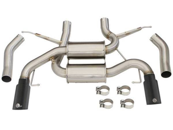 aFe introduces the MACH Force XP dual axle-back exhaust system for the 11-14 Mustang GT V8-5.0L. In recent testing this system produced 18 horsepower and 15 lbs. x ft. of torque. This exhaust is constructed from 3 in. mandrel-bent, stainless steel and is MIG-welded. The system uses high-flow, stainless steel mufflers which improves performance across the power band while maintaining a great tone. To finish off this exhaust are dual, gloss black, 4 in. double wall, 304 stainless steel aFe laser etched tips. This exhaust uses all factory hanger locations for a hassle-free installation. No modifications necessary. All aFe exhaust systems are engineered and manufactured in our Corona, California manufacturing facility.