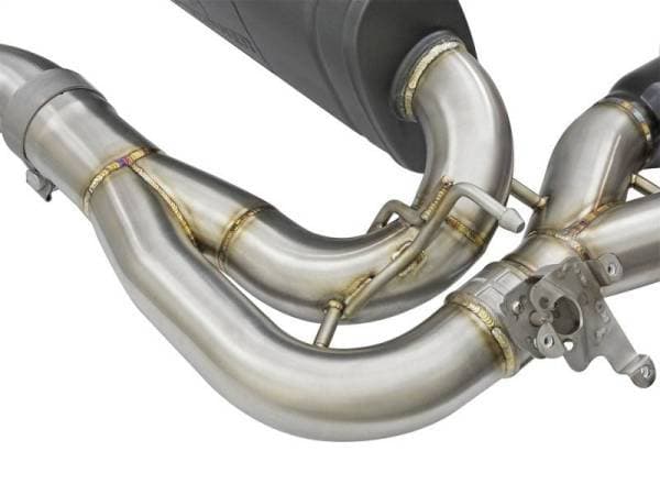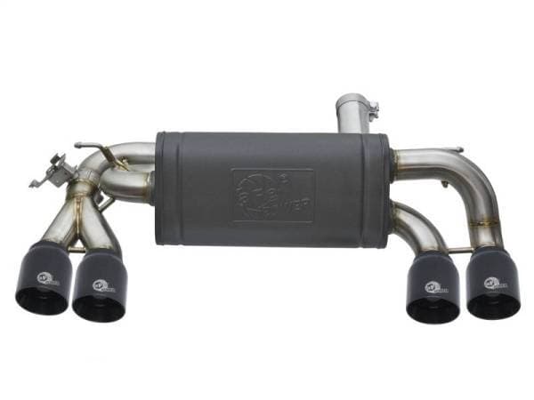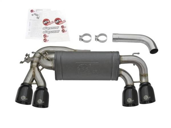 Aggressive Sound: A free-flowing, transverse muffler is used to absorb high pitch tones producing a powerful sound and unleashing all available horsepower and torque. The muffler is finished with a high-temp powder-coated black finish and a stamped aFe power logo. Exhaust Valve: This down-pipe back exhaust system incorporates a factory style exhaust valve which uses the factory exhaust valve motor (not included). The valve helps regulate, direct and control the flow of exhaust gases by opening, closing, or partially obstructing passageways depending on throttle position for maximum performance. Simple Installation: This MACH Force-Xp axle-back exhaust system uses factory mounting locations providing stability and a hassle-free installation. Quad 4" Gloss Black Tips Finishing off this system are quad 4" diameter, gloss black, 304 stainless steel tips. The tips come with a laser-etched aFe power logo for an aggressive style. Leak-Free Seal: High quality band clamps are used for a complete 360 degree sealing surface. Brushed 304 SS Construction: The performance axle-back exhaust system is constructed of 3" to 2-1/2" mandrel-bent, brushed 304 stainless steel tubing for maximum performance, corrosion resistance and strength eliminating cracking. All aF e exhaust systems are engineered and manufactured in our Corona, California manufacturing facility.
