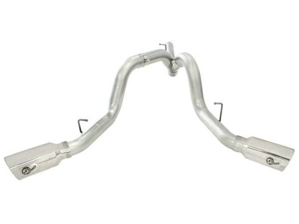 Interested in a new exhaust system for your LML Duramax? Check out the ATLAS dual DPF-Back exhaust system by aFe. This system is constructed from 4 in. mandrel bent aluminized steel tubing and uses high quality band clamps and OE-style bayonet hangers. This unit uses all factory mounting locations and comes with a bolt-on bracket that supports the driverside tailpipe. This provides for a quick hassle-free installation with no modification necessary. Also included in the exhaust system are dual massive 6 i n. polished 304 stainless steel slash cut tips with laser-cut stainless steel aFe power badges. The tips feature a drain port on the bottom to keep rust and corrosion away. ATLAS exhaust systems are the perfect combination of performance, fit and value. this exhaust is designed to convert the standard single exhaust into an aggressive dual exhaust. This exhaust system fits perfectly without relocating the spare tire. OE-style fit that does not change with time. Smooth transition bends allow for low turbulence, increasing horsepower, torque and lowering EGTs. All aFe exhaust systems are engineered and manufactured in our Corona, California manufacturing facility.