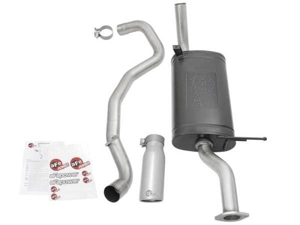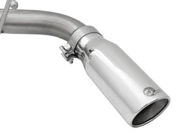 This MACH Force-Xp Cat-Back exhaust system is constructed of 2-1/2" mandrel-bent stainless steel tubing and comes complete with free-flowing stainless steel, high temp black powder-coated muffler, OE style bayonet hangers, band clamps and necessary hardware for a hassle-free installation. The smooth curves and increased diameter of this exhaust system helps remove restriction and keeps exhaust gas flowing smoothly for increased horsepower and torque. This system produced +11 horsepower and +22 lbs. x Ft. (*Dyno results from 49-36115-B/P) of torque over the stock exhaust system verified by our in house dyno. The system is finished off with a side exit 4" dia. high luster, polished, stainless steel tip with laser-etched aFe Power logo for an aggressive style. Installation is a Snap This MACH Force-Xp exhaust system use all factory mounting locations providing stability and a hassle-free installation. Leak-Free Seal: High quality OE-style flange and premium band clamps are used for a complete 360-degree sealing surface eliminating leak paths. Aggressive Sound: A free-flowing stainless steel, high temp black powder-coated 22" length muffler is used to absorb high pitch tones producing a powerful sound and unleashing all available horsepower and torque. Perfect Fit: OE-style bayonet hangers are used to maintain a stable pipe location during high vibration and high heat conditions. The bayonet tip holds the hanger bushing in place for an OE-style fit that does not change with time.