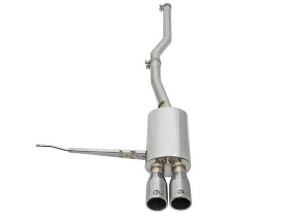 Testing: Up to 31% increase in Flow. 14" Muffler: This system incorporates a large 14" stainless steel muffler which produces a mellow sound while virtually eliminating exhaust drone. Flow and Performance: This MACH Force-Xp cat-back exhaust system is constructed of 2-1/2" mandrel bent 304 stainless steel tubing for maximum flow. Smooth transition bends allow for low turbulence, increasing horsepower and torque. Retains Rear Catalytic Converter: The rear cat is retained on this system to maintain a smooth deep sound but more importantly to keep the system street legal. Dual 3-1/2" Polished Center Exit Tips: Finishing off the exhaust are dual 3-1/2" polished stainless steel tips with laser-etched aFe power logos for an aggressive style.
