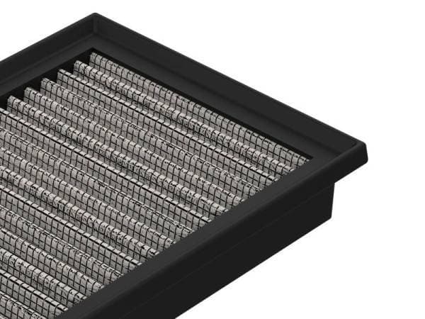 This filter features three layers of oil-free synthetic media and requires no oil during maintenance to provide maximum convenience. Its progressive layering provides great filtration efficiency and dust holding capacity. This media is best suited for street use. Pro DRY S filters are easily recharged with aFe's POWER CLEANER.Click here for more information about our filter media. aFe POWER performance air filters use a rounded, evenly spaced pleat design which allows for more usable filter surface area, providing increased flow and greater dust holding capacity. This pliable sealing surface conforms to even the most uneven filter housing, making for a perfect filter fit and sealing surface every time. This design eliminates the use of gaskets or sealants and always goes back to its original form. All aFe POWER flat panel performance air filters are constructed with a full 360-degree polyurethane frame. Unlike other materials that degrade after repeated heat cycles in an engine bay, polyurethane maintains its original molded shape.