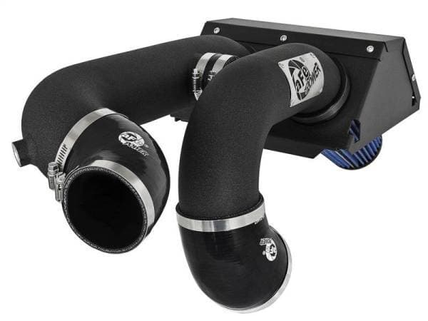 This sealed intake system utilizes pre-oiled, large 7" tall radial flow performance air filters with 5-layers of progressive finer mesh cotton media providing maximum airflow and performance. Also included is a Magnum SHIELD Pre-filters to protect your performance air filter from water splash or heavy rainstorms. Dual Mandrel-bent Wrinkle-black Powder-coated aluminum intake tubes are designed with an H-pipe to balance intake tube pressure and maximizes airflow and velocity. aFe developed this wrin kle-black powder-coated aluminum heat shield to snap onto the top of the lower half of the factory air box to provide a hassle-free installation utilizing factory mounting locations. An aluminum cover is used to finish off this intake and add a sense of style to your engine bay.