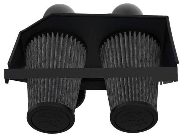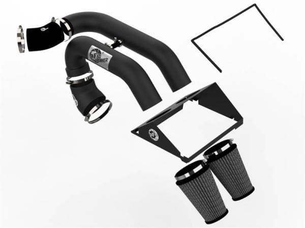 Dual Large 3-Layer "Oil-Free" Performance Air Filters: This intake system utilizes oil-free, large 7" tall radial flow performance air filters with 3-Layer synthetic media for maximum convenience. Top Mounted Heat Shield Design: aFe developed this sturdy 18 gauge steel wrinkle-black powder-coated heat shield to snap onto the top of the lower half of the factory airbox to provide a hassle-free installation utilizing factory mounting locations. Large Dual 3" Intake Tubes: Dual Mandrel-bent Wrinkle-black Powder-coated aluminum intake tubes are designed with an H-pipe to balance intake tubes. Hassle-Free Installation: All clamps, couplings, and hardware are included for hassle-free installation. This is a direct bolt-on kit that requires no cutting or drilling on factory parts.