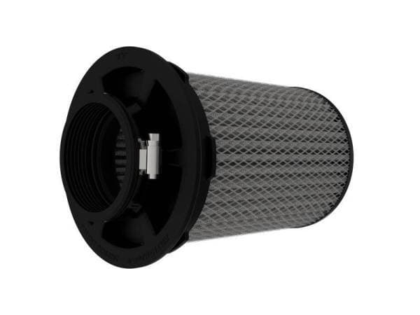 This filter features three layers of oil-free synthetic media and requires no oil during maintenance to provide maximum convenience. Its progressive layering provides great filtration efficiency and dust holding capacity, while its inverted top makes for more filter surface area, resulting in longer service intervals. The air filter is wrapped in reinforced metal providing maximum strength to prevent filter collapse. This media is best suited for street and light off-road use. Pro DRY S filters are easily recharged with aFe's POWER CLEANER. aFe POWER performance air filters use a rounded, evenly spaced pleat design which allows for more usable filter surface area, providing increased flow and greater dust holding capacity. This aFe POWER performance air filter is constructed with a polyurethane base and top. Unlike other materials that degrade after repeated heat cycles in an engine bay, polyurethane maintains its original molded shape. The Momentum series' patented interface uses a single clamp around the housing to secure the filter to the housing. This simple design allows for easy filter maintenance and replacement