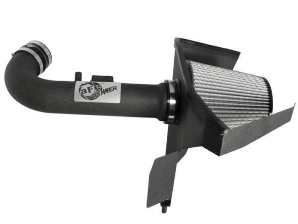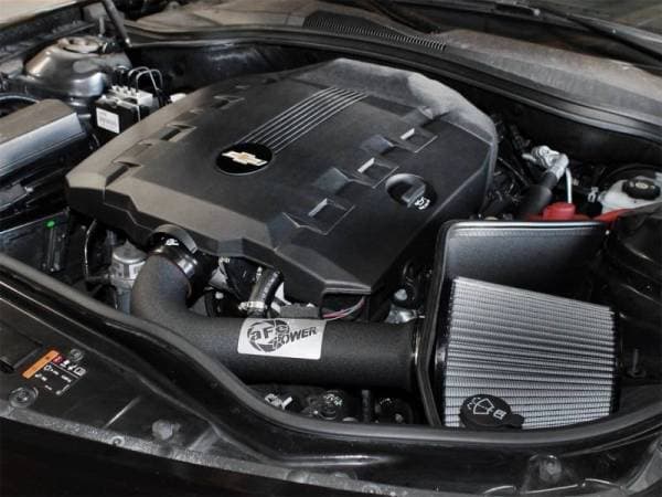 This cold air intake system resulted in 14 horsepower, 20 lbs. x ft. torque max gain and outflowed the factory intake by 21% on the 2012-2014 Chevrolet Camaro V6-3.6L. Included in this cold air intake system, is a 18 gauge powder-coated heat shield and a massive 8" tall, oil-free aFe Power Pro DRY S filter. The air filter uses a unique (patent-pending) flange retention design that allows the filter to be securely mounted to the heat shield without any hardware. A one-piece mandrel-bent wrinkle-black powder-coated intake tube maximizes air velocity providing maximum performance and throttle response. This is a direct bolt-on kit and requires no cutting or drilling on OEM parts.