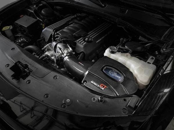 This 9†tall 360-degree radial flow air filter features our pre-oiled Pro 5R media with five layers of progressively finer cotton gauze media for maximum performance. Our Pro 5R media provides your engine with the largest amount of high-flowing air, usually resulting in the highest power gains out of all our filter media options. This media is perfect for street and/or track use. Its inverted top makes for more filter surface area, resulting in longer service intervals. The simple yet elegant one-piece sealed housing features our patent pending filter-to-housing interface, making installation a snap. The housing is made out of lightweight, high gloss, clear-coated plain weave carbon fiber. A clear sight window allows for filter inspection without removal of the air box. On 2015 and up Challenger models, the housing can be connected to the SRT Hellcat-style headlight opening thanks to the Carbon Fiber Dynamic Air Scoop (sold separately: PN 54-72203-SF). A plug is provided for use if the auxiliary air inlet is not utilized. A lightweight high gloss plain weave carbon fiber tube directs filtered air from the air filter to the engine. Using 3D computer modeling, It's designed to increase airflow and provide a perfect fit. Premium stainless-steel T-bolt clamps and a reinforced silicone coupling are used for strength and durability. Designed with fewer parts, this system's installation is extremely simple and secure.