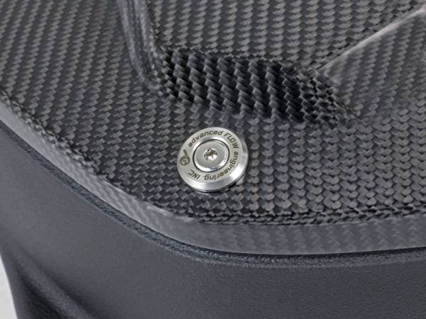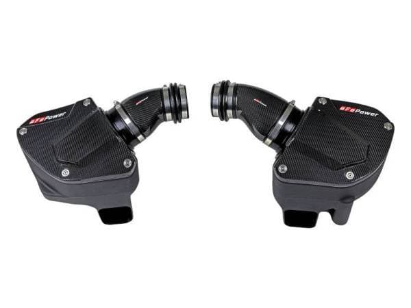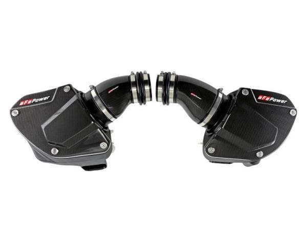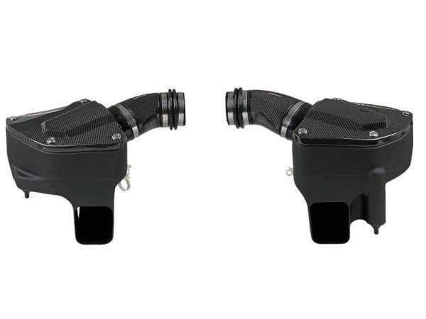 These 7" tall, 360-degree radial flow air filters were specially designed to be installed through the M5's strut braces, maximizing airflow and making for an easy installation. They feature our high-flowing pre-oiled Pro 5R media with five layers of progressively finer cotton gauze media for maximum performance. This media is perfect for street and/or track use. The air filters are surrounded by heat-resistant XLPE polymer housings. Covers, constructed from 100% twill weave carbon fiber, are secured to the housings with premium aFe POWER branded hardware - making for an aggressive style and simple air filter inspection. Lightweight, high gloss, twill weave carbon fiber tubes direct filtered air from the air filters to the engine. Using computer design software and dyno tuning, they're designed to achieve maximum power gains while maintaining a perfect fit. This is a direct fit intake system that utilizes factory mounting points and requires no cutting or modifications. All necessary clamps, couplings, premium hardware, and a Black Series plate are included. Optional 100% carbon fiber Dynamic Air Scoops (sold separately P/N: 58-10005SC) are available to bring more cool air from the kidney grilles into the intake housings.