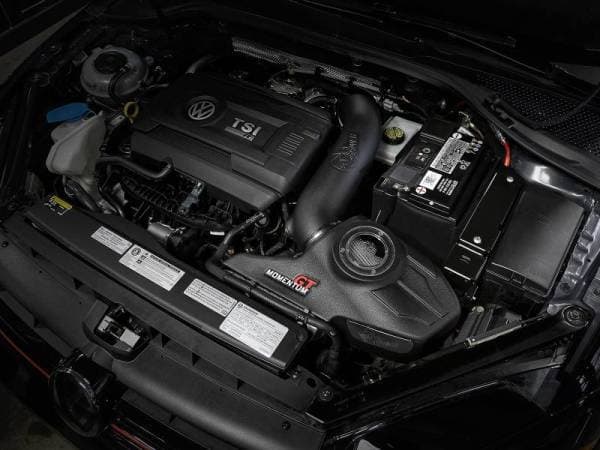 Large Three Layer Performance Air Filter:Momentum’s unique filter-to-housing interface was built to feature the largest air filter possible. This 7-1/2†tall 360-degree radial flow air filter features a 3-1/2" flange and our oil-free Pro DRY S media with three layers of synthetic media for maximum convenience. Its progressive layering provides great filtration efficiency and dust holding capacity, while not requiring the use of oils. This media is best suited for street use. Its inverted top makes for more filter surface area, resulting in longer service intervals.Unique One-Piece Housing:The smooth one-piece sealed housing, constructed of heat-resistant cross-linked polyethylene (XLPE), features our patented/patent-pending filter-to-housing interface. Its innovative design minimizes the total number of parts, making for an easy installation. A clear round sight window, resembling the VW logo, allows for hassle-free filter inspection without having to disassemble your system. The housing incorporates the OE air inlet and features an additional auxiliary air inlet that can be plugged if desired.Dyno-Tuned Intake Tube:This system features a high quality, computer-designed, dyno-tuned intake tube to achieve maximum power gains while maintaining a perfect fit. Its XLPE material is heat soak resistant and extremely durable.Premium Components:Stainless-steel clamps and a silicone coupling are included for strength and durability, while also providing the most secure installation available. Momentum GT intakes are designed with fewer parts for a fast and easy installation.
