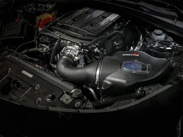 Unique One-Piece High Quality Housing W/ Sight Window: A custom CAD designed roto-molded housing made from heat soak resistant material eliminates the use of multiple components and ensures the coolest air intake charge available. A large clear sight window allows for filter inspection without removal of the airbox. The roto-molded housing is made out of black cross-linked polyethylene. A urethane plug is also included if you wish to completely seal the airbox. High Quality Tube: This system uses a high quality plastic CAD designed, dyno-tuned, roto-molded intake tube to achieve maximum power gains while maintaining a perfect fit. Large 5-Layer Performance Air Filter: This Momentum GT intake system was designed around the largest filter possible to allow maximum performance and filtration. This cylindrical filter has a large oval (6-3/4" x 4-3/4") flange and is 9" tall inverted top Pro 5R filter media. The Pro 5R performance air filter features 5-layers of p rogressively finer mesh cotton gauze oiled media and is constructed with 100% polyurethane frame for long life and multiple cleaning cycles. Premium Hardware: Premium stainless steel clamps and a silicone coupling are used for strength and durability while also providing the most secure installation available. Momentum GT intakes are designed with fewer parts for a quick and simple installation. Note: This intake system is not CARB exempt at this time and is not legal for sale in California or use on vehicles registered with the California Department of Motor Vehicles.