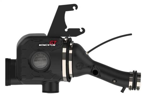 Bringing you the next generation of intakes, aFe is proud to introduce the Momentum GT Sealed intake system for the 2012-2015 Toyota Tacoma with the V6-4.0L engine. The Momentum GT sealed air intake system is designed using the most up-to-date engineering tools and techniques to provide you with the perfect blend of power and protection. This system is superior in every way. From the one-piece sealed housing, to the massive air filter, rotomolded tube and premium hardware. Unique One-Piece Housing: The smooth one-piece sealed housing with auxiliary air scoop is used to eliminate the use of multiple-piece housings and ensure the coolest air intake charge available. A urethane plug is also included for those cold weather applications where you want to block the auxiliary air scoop. Roto-molded Tube: This System uses a CAD designed, dyno-tuned, roto-molded intake tube to achieve maximum power gains while maintaining a perfect fit. Large 3-Layer Performance Air Filter: This Momentum GT intake system was designed around the largest filter possible to allow maximum performance and filtration. This cone inverted top filter has a massive round flange and is 8" tall inverted top Pro DRY S media. The Pro DRY S performance air filter features 3-layers of progressive finer porosity synthetic media providing maximum convenience. The unique air filter to housing interface (patent pending) allows for maximum filter size which increases the available air volume while simplifying the installation process. Premium Hardware: Premium stainless steel T-bolt clamps are used to securely mount the high flow air filter to the 1-piece airbox. Momentum GT intakes are designed with fewer parts for a quick and simple installation.