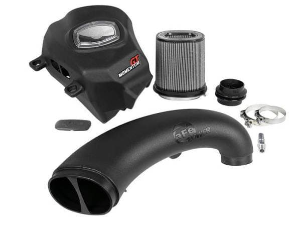 Large Three Layer Performance Air Filter:The Momentum’s unique filter-to-housing interface was built to feature the largest air filter possible. This aFe POWER Pro DRY S is a 9" tall, oil-free, 360-degree radial flow performance air filter with three layers of synthetic media for maximum convenience. Its progressive layering provides great filtration efficiency and dust holding capacity, while not requiring the use of oils. This media is best suited for street and light off-road use.Unique One-Piece Housing:The textured one-piece sealed housing, constructed of cross-linked polyethylene (XLPE), is used to eliminate the use of an overabundance of parts and ensure the coolest air intake charge possible. A large, clear sight window allows for hassle-free filter inspection, without having to disassemble your system. An optional auxiliary air inlet pulls in additional cool air from the inner fender when under power.Massive Dyno-Tuned Intake Tube:This system features a high quality, computer-designed, dyno-tuned intake tube to achieve maximum power gains while maintaining a perfect fit. Its XLPE material is heat soak resistant and extremely durable.Premium Components:Stainless-steel T-Bolt clamps and an injection molded coupling are included for strength and durability, while also providing the most secure installation available. Momentum GT intakes are designed with fewer parts and utilize factory mounting points for a fast and easy installation.Note:Application includes models equipped with the e-torque engine option.