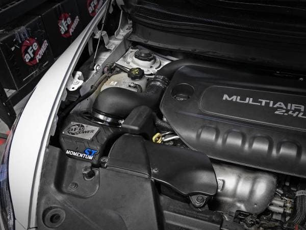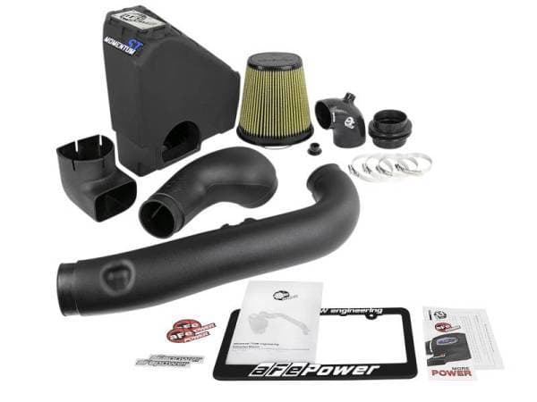 Unique One-Piece Sealed Housing: The smooth one-piece sealed housing with auxiliary air scoop is used to eliminate the use of multiple-piece housings and ensure the coldest air intake charge available. A urethane plug is also included if you wish to completely seal the auxiliary air scoop. High Quality Tube: This system uses a high quality plastic CAD designed, dyno-tuned, roto-molded intake tube to achieve maximum power gains while maintaining a perfect fit. Large 7-Layer Performance Air Filter: This Momentum ST intake system was designed around the largest filter possible to allow maximum performance and filtration. This cone filter has a massive round flange and is 8" tall Pro GUARD7filter media. The Pro GUARD7performance air filter features 2-layers of Finer Porosity Synthetic non-woven media for highest filtration efficiency for extreme dust environments. Premium Hardware: Premium stainless steel clamps and a silicone coupler at the throttle body is used for strength and durability while also providing the most secure installation available. Momentum ST intakes are designed with fewer parts for a quick and simple installation.