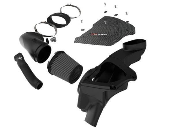 Unique One-Piece Sealed Housing: A custom CAD designed roto-molded housing made high quality plastic eliminates the use of multiple components and ensures the coolest air intake charge available. The roto-molded housing is made out of black cross-linked polyethylene. Carbon Fiber Finish Trim Cover: This carbon fiber finish trim cover is constructed with lightweight vacuumed formed ABS plastic for underhood appearance. High Quality Tube: This system uses a high quality plastic CAD designed, dyno-tuned, roto-molded intake tube to achieve maximum power gains while maintaining a perfect fit. This tube has a built-in resonance chamber to catch un-wanted air intake noises. Large 3-Layer "Oil-Free" Performance Air Filter: This sealed intake system utilizes an oil-free, large 6" tall conical inverted top 360 degree radial flow performance air filter with 3-Layer progressively finer porosity synthetic media for maximum convenience. Premium Hardware: Premium hardware and clamp are used to securely mount the high flow air filter and the intake tube. This sealed intake system is designed with fewer parts for a quick and simple installation.