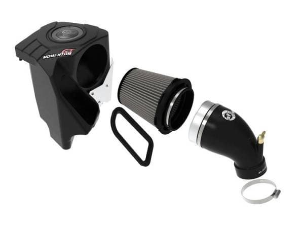 Large Three Layer Performance Air Filter: Momentum's unique filter-to-housing interface was built to feature the largest air filter possible. This 6 IN tall 360-degree radial flow air filter features a 4-1/2" flange and our oil-free Pro DRY S media with three layers of synthetic media for maximum convenience. Its progressive layering provides great filtration efficiency and dust holding capacity, while not requiring the use of oils. This media is best suited for street use. Its inverted top makes for more filter surface area, resulting in longer service intervals.Unique One-Piece Housing: The sealed heat-resistant housing, constructed of XPLE (cross-linked polyethylene) polymer, features our patent-pending filter-to-housing interface and a clear sight window that allows for hassle-free filter inspection. An aluminum heat shield panel on the side of the housing deflects hot air emitted from the turbocharger, ensuring the system's two air inlets bring in the coolest air possible. In addition to the massive auxiliary air inlet, this intake utilizes the vehicle's OE air inlet with no additional hardware.Reinforced Silicone Intake Tube: This intake system utilizes a flexible silicone intake tube that is reinforced with four layers of nylon material, making it virtually resistant to wear and deterioration. It includes a vacuum hose fitting, along with an aluminum insert that easily mates the intake tube to the air filter.Hassle-Free Installation: Stainless-steel clamps and a silicone inlet trim are included for strength and durability. Momentum GT's innovative filter-to-housing design minimizes the total number of parts, making for a fast and easy installation.Fitment Note: This item will only fit models equipped with 45TFSI engine.