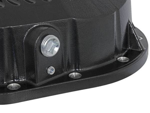 aFe Powers new front-end differential cover brings performance engineering to the protection of your trucks front-end. This differential cover has a 3-1/2 quart lube capacity (factory cover holds 2-1/2 quarts) at the factory fluid level line, a magnetic drain plug and a magnetic fill plug to remove unwanted debris. Built-in external fins transfer heat from the fluid to the outside air for maximum cooling. aFe has also designed a large oil level sight glass with calibration plug set to the factory fluid level to eliminate overfilling. This differential cover is constructed out of durable die-cast A380 aluminum with reinforced ribs and a wrinkle black powder-coating for maximum strength and style. When it comes to engineering for power, performance, protection and value, aFe Power is the only choice.