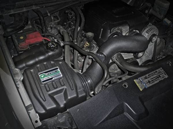This 360-degree radial flow air filter features a 5" flange and our oil-free Pro DRY S media with three layers of synthetic media for maximum convenience. Its progressive layering provides great filtration efficiency and dust holding capacity, while not requiring the use of oils. This media is best suited for street and light off-road use. The filter features an injection molded base and top for lighter weight and rigidity. Its base includes a built-in 3-angle velocity stack for smooth, even airflow and captive screws to easily attach the filter to the housing. Quantum uses an integrated filter-to-housing design that attaches both components with four captive screws, making for a positive surface area seal, as well as easy installation and maintenance. Its durable sealed housing features a unique, five rib, industrial-grade look for aFe quality recognition. Quantum uses a dyno-tuned, computer designed intake tube to achieve optimum air flow and a perfect fit. Its XLPE (cross-linked polyethylene) polymer material is heat soak resistant and extremely durable. This Quantum intake system includes a flexible bellows-style coupling and a durable reinforced silicone coupling. Quantum intakes are designed with fewer parts for a quick and easy installation. This is a direct fit intake system that utilizes factory mounting points and requires no cutting or modifications. All necessary clamps, couplings, and hardware are included.