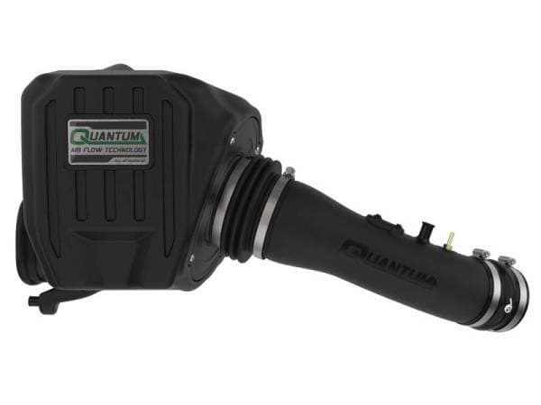 This 9†tall 360-degree radial flow air filter features a 5" flange and our pre-oiled Pro 5R media with five layers of progressively finer cotton gauze media for maximum performance. It provides your engine with the largest amount of high-flowing air and delivers the highest power gains in most cases. This media is perfect for street use. Its inverted top makes for more filter surface area, resulting in longer service intervals. The filter features an injection molded base and top for lighter weight and rigidity. Its base includes a built-in 3-angle velocity stack for smooth, even airflow and captive screws to easily attach the filter to the housing. Quantum uses an integrated filter-to-housing design that attaches both components with four captive screws, making for a positive surface area seal and easy installation. Its durable sealed housing features a unique, five rib, industrial-grade look for aFe quality recognition. Quantum uses a dyno-tuned, computer designed intake tube to achieve optimum air flow and a perfect fit. Its XLPE (cross-linked polyethylene) material is heat soak resistant and extremely durable. Quantum cold air intake systems include a silicone bellows coupling to absorb excessive engine movement and provide flexibility, for a long-lasting secure installation. Quantum intakes are designed with fewer parts for a quick and easy installation. This is a direct fit intake system that utilizes factory mounting points and requires no cutting or modifications. All necessary clamps, couplings, and hardware are included.