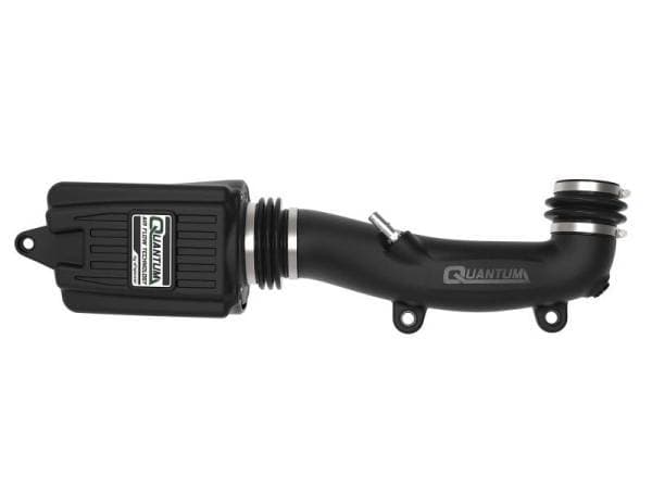 Quantum uses an integrated filter-to-housing design that attaches both components with four captive screws, making for a positive surface area seal and easy installation. Its durable sealed housing features a unique, five rib, industrial-grade look for aFe quality recognition. The Pro 5R performance air filter features five layers of progressively finer porosity cotton gauze media, providing maximum performance. Quantum air filters are specifically designed for Quantum Series intake systems with an injection molded base and top for lighter weight and rigidity. The filter base also features a 3-angle velocity stack for smooth, even air flow. Quantum uses a dyno tuned, CAD-designed intake tube to achieve optimum air flow. It’s made from high impact, XLPE material for heat soak resistance and durability. The Quantum Intake System includes silicone bellows couplings to absorb excessive engine movement and provide flexibility for a secure and easy install. Quantum intakes are designed with fewer parts for a quick and simple installation. This is a direct fit intake system that utilizes factory mounting points and requires no cutting or modifications. The filter securely fastens to the housing with four captive screws, eliminating lost hardware, while a silicone bellows coupling absorbs excessive engine movement and provides flexibility for an easy install.