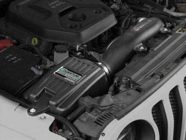 Unique Integrated Filter-to-Housing Intake Design: Quantum uses an integrated filter-to-housing design by attaching both components with 4 captive screws for a positive surface area seal and quick and easy install. Quantum's Roto-molded housing features a unique, 5 rib industrial grade look for long lasting durability and aFe quality recognition. Quantum Pro DRY S Performance Air Filter: Filter Media-Equipped with our oil-free, 360-degree radial flow air filter with 3-layers of progressive synthetic media provides optimum flow, protection and cleaning convenience. Filter Construction-Specifically designed for the Quantum Series intake systems with injection molded base and top for lighter weight and rigidity. Captive screws are used to eliminate lost hardware and to securely fasten to housing. The base includes a built-in, 3-angle velocity stack for smooth, even airflow. Inverted top filters offer more surface area for longer life and an exceptional look. Dyno Tuned Intake Tube: Quantum uses a dyno tuned, CAD-designed intake tube to achieve optimum air flow and is made from high impact, XLPE material for heat soak resistance and durability while maintaining a perfect fit. Silicone Bellows Coupling: The Quantum Intake System includes silicone bellows couplings to absorb excessive engine movement and are flexible for a secure and easy install. Quantum intakes are designed with fewer parts for a quick and simple installation. Hassle-Free Installation: This is a direct fit intake system that utilizes factory mounting points and requires no cutting or modifications. All clamps, couplings, and hardware are included for hassle-free installation. Note: This intake system is not CARB exempt at this time and is not legal for sale in California or use on vehicles registered with the California Department of Motor Vehicles. All aFe intake systems are engineered and manufactured in our Corona, California manufacturing facility.