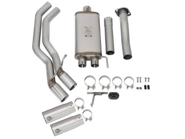 Introducing an all new Rebel Series Dual Center Exit Cat-Back exhaust system for the Jeep Wrangler (JK) with V6-3.6L/3.8L engine. This unique Rebel Series exhaust system is designed with dual center exit tips for an aggressive look. The Tips are 4-1/2" with aFe power plates and constructed out of stainless steel for durability. This performance cat-back exhaust is constructed of 2-1/2" MIG-welded mandrel-bent stainless steel tubing. The smooth curves and increased diameter of this exhaust system helps remove restriction and keeps exhaust gas flowing smoothly for increased horsepower, torque and throttle response. In testin g, this cat-back exhaust system added an astounding +9 horsepower and +14 lbs. x ft. of torque as verified by our in house dyno. This exhaust system comes complete with a 22" free-flowing muffler, OE style bayonet hangers, band clamps and all hardware necessary for a hassle-free installation.