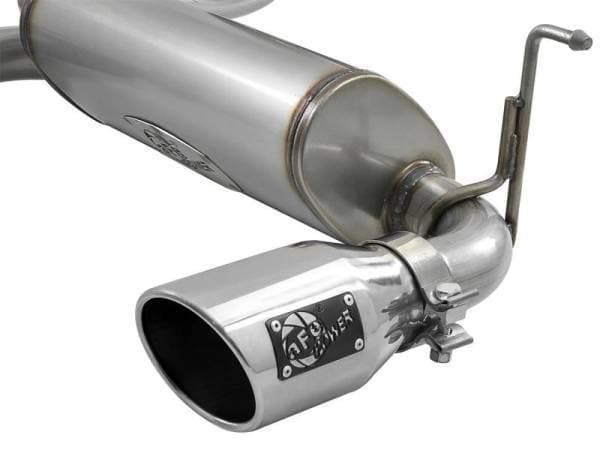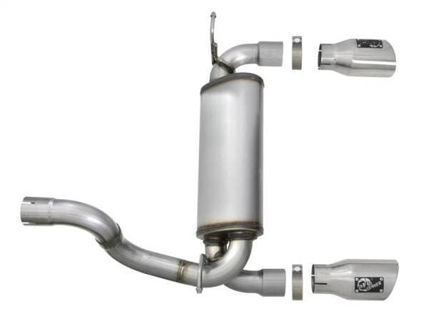 aFe Rebel Series axle-back exhaust system complements your Jeep JL on and off-road. Mandrel bent 409 stainless steel tubing and free-flow muffler delivers increased exhaust flow, performance and tuned sound. MIG welded for durability the system uses factory mounting locations for an OE-style fit and stays put under any driving condition. Dual 4-1/2" black powder coated stainless steel tips with aFe POWER logos makes this system look as good as it performs. A free-flowing, stainless steel, muffler is used to absorb high pitch tones producing a powerful sound and unleashing more horsepower and torque potential. OE-style bayo net hangers are used to maintain a stable pipe location during any driving conditions. The bayonet tip holds the hanger bushing in place for an OE style, long lasting fit.
