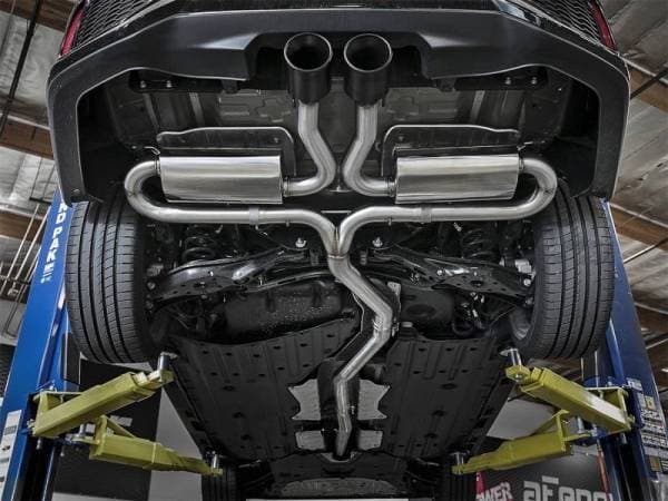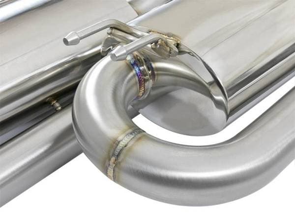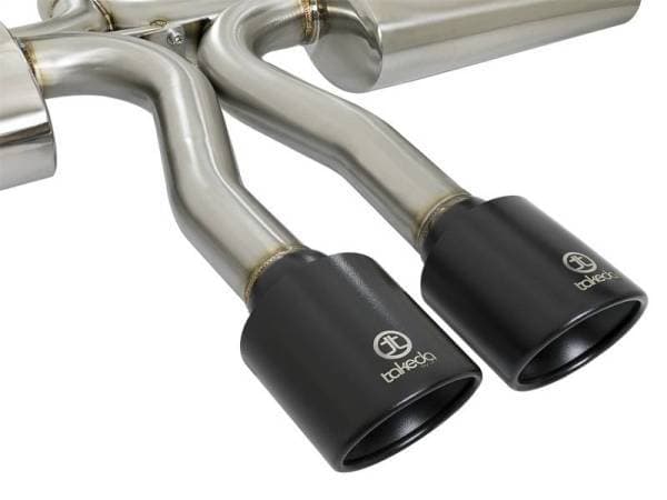 aFe's Takeda stainless steel cat-back exhaust system brings the power and sound to the 2017 - 2018 Honda Civic Si Sedan with I4-1.5L (t) engine. Constructed from 3" to 2-1/2" mandrel bent, 304 stainless steel tubing improves exhaust flow to deliver up to +10 HP and +11 lbs. x ft. torque. 100% hand TIG-welded by certified craftsmen for race proven strength and durability, the Takeda system incorporates dual, free-flowing 304 stainless steel mufflers to improve performance across the power band while maintaining an aggressive tone and long lasting, good looks. Finished with dual 4-3/4" X 4-1/4" oval black tips etched with Takeda brand logos gives the Civic Si a track-style, custom appearance. Performance Gains: In testing, the cat-back exhaust system resulted in gains up to +10 horsepower and +11 lbs. x ft. of torque, as measured on our in-house dyno. Aggressive Sound: Dual, free-flowing, 304 stainless steel mufflers are used to absorb high pitch tones producing a powerful sound and unleashing more horsepower and torque potential. Dual Round, Double-Wall, Angle-Cut Black Exhaust Tips: This dual rear-exit system features round, double-wall angle-cut, black stainless steel exhaust tips w/ laser-etched Takeda logo for a custom appearance. Installation is a snap: This Takeda exhaust system uses all factory mounting locations providing stability and a hassle-free installation. Perfect Fit: OE-style bayonet hangers are used to maintain a stable pipe location during any driving conditions. The bayonet tip holds the hanger bushing in place for an OE style, long lasting fit. Leak-Free Seal: High quality band clamps are used for a complete 360-degree sealing surface.