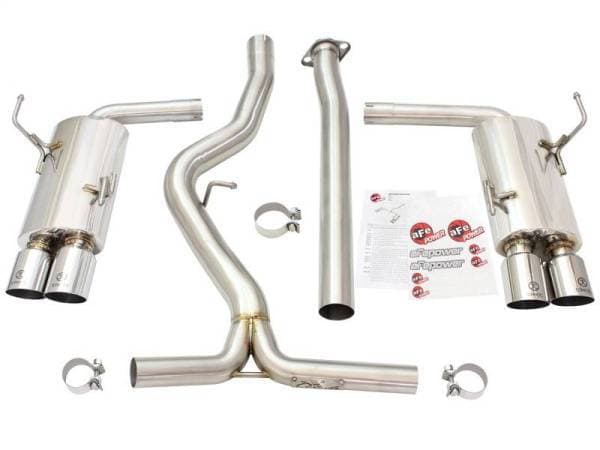 aFe is proud to introduce an all new Takeda dual cat-back exhaust system for the 2015-2017 Subaru WRX and WRX STI with the H4-2.0L/2.5L (t) engines. This performance cat-back exhaust system is constructed out of 3" into dual 2-1/4" mandrel-bent 304 stainless steel tubing and incorporates a mitered merge to evenly distribute exhaust gases resulting in added horsepower and torque. In testing, this system resulted in gains up to +14 horsepower and +22 lbs. x ft. of torque verified by our in house dyno. This cat-back exhaust utilizes dual high-flow 304 stainless steel mufflers to improve performance across the power band while maintaining an aggressive sound. To finish off the exhaust are quad, 304 stainless steel, high-luster, polished 3-1/2" diameter tips. The tips come with laser-etched Takeda logos for an aggressive style. This unit is 100% TIG-Welded by certified craftsmen for race proven strength and durability and is a direct bolt-on system that requires no modifications. All necessary hardware is included for a hassle-free installation.