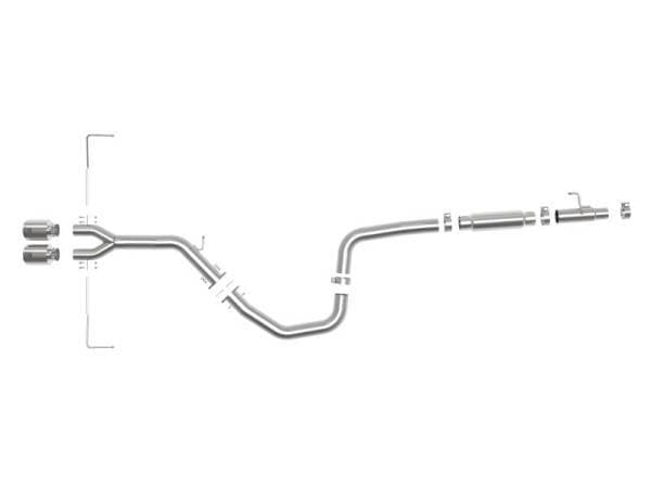 Performance Gains: This system produced gains of up to +11 HP and +10 lbs. x Ft. TQ., as measured on our in-house dyno. 3" - 2-1/2" 304 Stainless Steel Construction: This cat-back exhaust system is constructed of 3" - 2-1/2" mandrel-bent 304 stainless steel tubing for maximum strength and durability. Dual 4-1/2" Diameter Polished Exhaust Tips: Finishing off this exhaust system are dual 4-1/2" diameter polished 304 stainless steel clamp-on exhaust tips. The tips feature a laser etched Takeda logo for a unique style. Powerful Sound: This system produces a powerful sound unleashing all available horsepower and torque. Installation: Some cutting may be required, see instruction sheet for further information. Utilizing factory style flanges and hangers this system mounts directly to factory mounting locations for a hassle-free installation. Integrated Mitered Merge Collector: A mitered merge collector is used to decrease turbulence and increase exhaust velocity resulting in increased horsepower, torque and improved throttle response. Computer-Aided Design: Utilizing state-of-the-art computer-aided design technology, this exhaust system is designed for custom, high tolerance factory fitment. MIG-Welded: 100% MIG-Welded for race-proven strength and durability. Resonator: This system features a 4" x 16" 304 stainless steel resonator to reduce drone. An optional resonator delete pipe is available (PN 49-36622). Emissions Disclaimer: This product does not require a CARB EO#. aFe POWER exhaust systems are engineered and manufactured in our Corona, California facility.