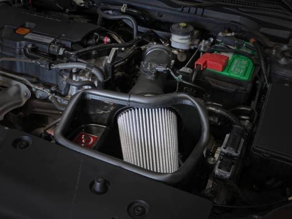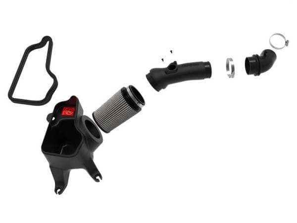 Large Three Layer Performance Air Filter: This 360-degree radial flow air filter features a 3-1/2" flange and our oil-free Pro DRY S media with three layers of synthetic media for maximum convenience. Its progressive layering provides great filtration efficiency and dust holding capacity, while not requiring the use of oils. This media is best suited for street use. Its inverted top makes for more filter surface area, resulting in longer service intervals.One-Piece Housing: The included massive air filter is surrounded by an open-element XLPE (cross-linked polyethylene) polymer housing that minimizes warm engine air for maximum performance. Its open design allows for easy viewing of the air filter, yet creates a heat-blocking seal when the vehicle's hood is closed. A larger, upgraded air inlet captures air from the factory scoop and delivers it directly to the air filter.Dyno-Tuned Intake Tube: This system features a high quality, computer-designed, dyno-tuned intake tube to achieve maximum power gains while maintaining a perfect fit. Its XLPE material is heat soak resistant and extremely durable.Hassle-Free Installation: This is a direct fit intake system that utilizes factory mounting points and requires no cutting or modifications. All necessary clamps, couplings, and hardware are included. Its revolutionary design, featuring our patent pending filter-to-housing interface, uses half the number of parts of a traditional cold air intake system.