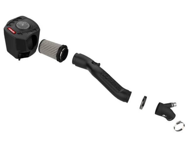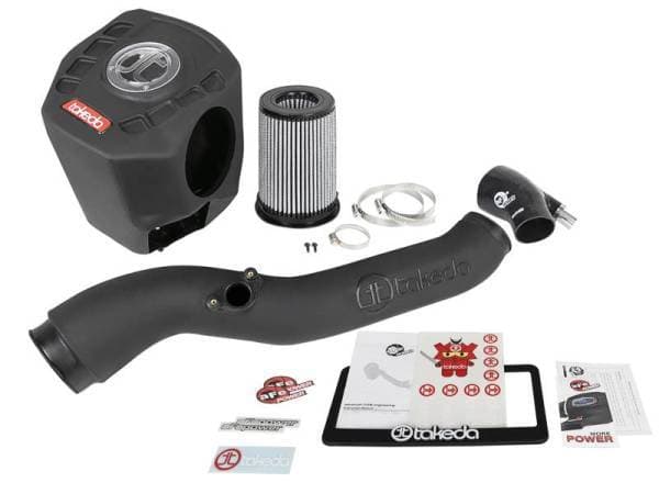 A custom CAD designed roto-molded housing made high quality plastic eliminates the use of multiple components and ensures the coolest air intake charge available. A large clear sight window allows for filter inspection without removal of the airbox. The roto-molded housing is made out of black cross-linked polyethylene. This system uses a high quality plastic CAD designed, dyno-tuned, roto-molded intake tube to achieve maximum power gains while maintaining a perfect fit. This intake system utilizes a oil-free, large, 7-1/2" tall conical inverted top 360 degree radial flow performance air filter with 3-layers of progressive finer porosity synthetic media air filter, providing maximum convenience with excellent efficiency. A premium stainless steel clamps and a silicone coupling are used for strength and durability while also providing the most secure installation available. Takeda Momentum intakes are designed with fewer parts for a quick and simple installation.
