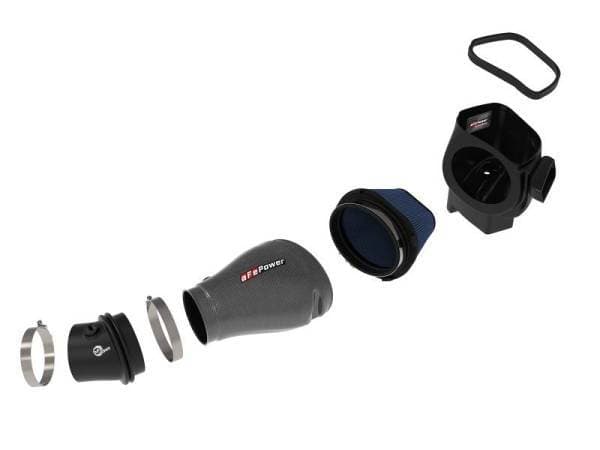 This 7†tall 360-degree radial flow air filter features a 5-1/2" by 7-1/2" flange and our pre-oiled Pro 5R media with five layers of progressively finer cotton gauze media for maximum performance. It provides your engine with the largest amount of high-flowing air and delivers the highest power gains in most cases. This media is perfect for street and/or track use. The included massive air filter is surrounded by an open-element XLPE (cross-linked polyethylene) polymer housing that minimizes warm engine air for maximum performance. Its open design allows for easy viewing of the air filter and delivers an aggressive Air Intake sound. Multiple air inlets bring in cool air when under power without capturing any warm air surrounding the engine. The lightweight tube is computer-designed to achieve maximum power gains while maintaining a perfect fit. Manufactured from 100% twill weave carbon fiber, it features zero fiberglass and is clear-coated for the highest quality construction. This is a direct fit intake system that utilizes factory mounting points and requires no cutting or modifications. All necessary stainless-steel clamps, silicone coupling, and hardware are included. Its revolutionary design, featuring our patent pending filter-to-housing interface, uses half the number of parts of a traditional cold air intake system.