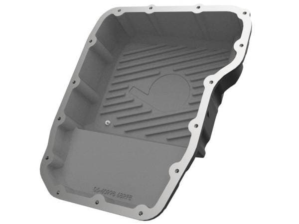 aFe Power's new deep transmission pan brings performance engineering to the protection of your trucks transmission. This transmission pan has additional capacity for 2 more quarts over stock at the factory line and a magnetic drain plug to capture loos particles. Built-in internal and external fins transfer heat from the fluid to the outside air for maximum cooling. This transmission pan is constructed out of durable cast aluminum with reinforced ribs and a black powercoated finish with machined accents for maximum strength and styling.